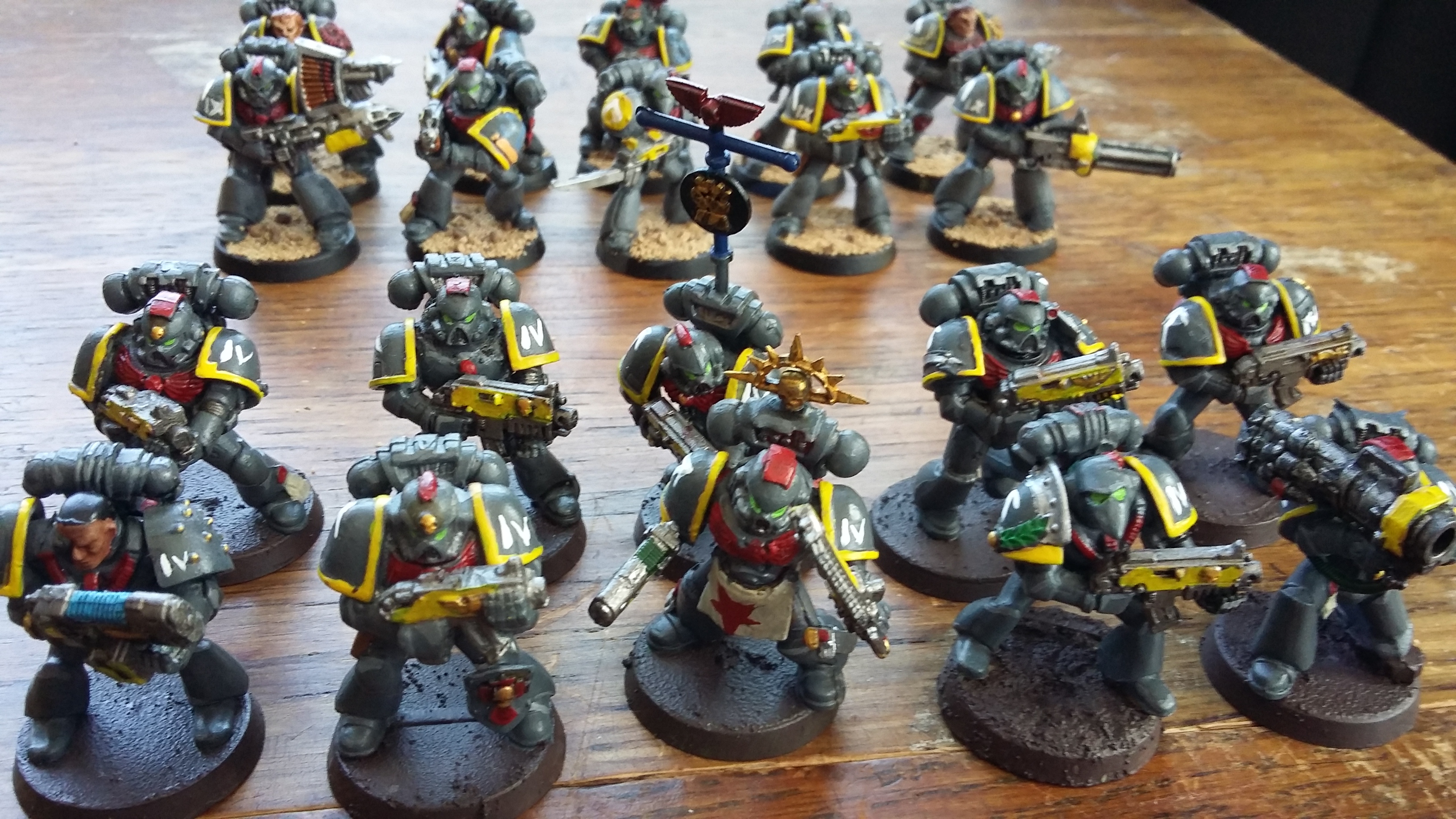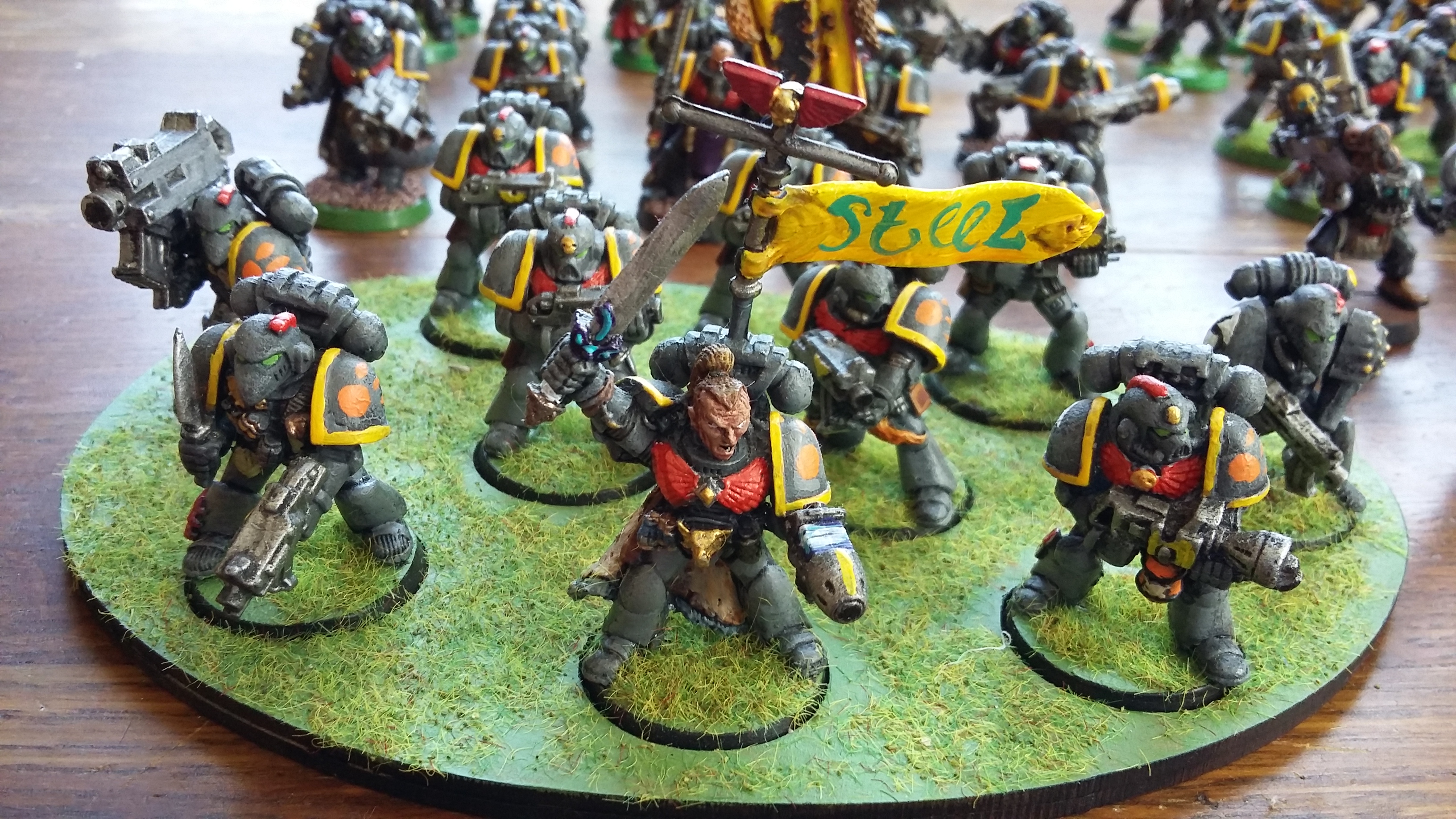 As I mentioned a couple of weeks ago I finished painting the whole 2nd Company of the Steel Guard. Actually, when I laid them all out to photo them I discovered I’d actually painted 11 squads! Not sure how you can miscount squads of Space Marines but I achieved it.