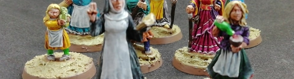 Last one from me for a while… plenty more on the painting desk waiting to be finished. Some time ago I backed Midgard’s Village of the Witches Kickstarter, though I can’t remember what it was that I particularly wanted. I think that I felt a box of assorted witches would come in useful in some project or other, which is as good as reason to buy minis as I’ve ever found. These were part of it, there is a witch model to match each of these ladies. It felt like a nice change of direction so I got to work. Again, most of this is contrast paint over gloss white primer. When all this is over (will it ever be over, or have we just fallen into the quasi-fascist dystopia we’ve been expecting all our lives) I must get some Grey Seer and see how that goes. Some of these ladies I really enjoyed, but the posh one I struggled with. Finally the Witchfinder also suffered the ravages of the chaos puppy so he’ll go for stripping and maybe become part of another project. Oh yeah, finally part deux, I’m going to play my first game of D&D tonight… I’m anxious in case I’m crap at it! Seriously need this brain to give it a rest ffs… Thanks for reading, stay safe and take care of each other!