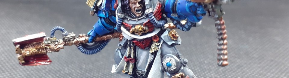 The Steel Guard project continues, bit by bit, and here we have one of the senior officers of the chapter. Chief Librarian Blasst has faced daemons and heretics and possessed psykers and really angry dogs, and has overcome them all. He is a fearless battler against the dark and was bloody hard to paint because of all the tricky detail!