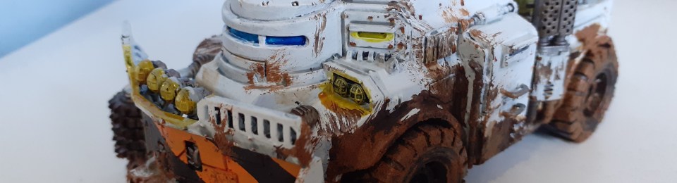 Grinding out the cult (pun intended)! 25 Sunday Sep 2022 Posted by terryshithole in genestealer cults ≈ 1 Comment Tags40k, citadel miniatures, cultists, genestealer hybrids, waiting for the star children A vehicle for the cult. I have also bought a land train so as to add something oldhammery to the cult. Of that, later! I’m pleased with the mud spatter on this one, though maybe some weathering would have looked good too. Share this: Click to share on X (Opens in new window) X Click to share on Facebook (Opens in new window) Facebook Like Loading...