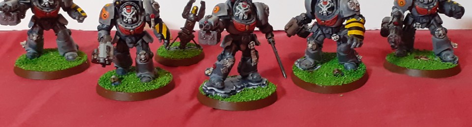 The final miniatures from the Leviathan Starter set have been finished. The new monopose Terminators are very pretty, scaled well to earlier Terminators, and are nice and dynamic. Pleasure to paint, as Space Marines often are. It’s always nice to finish a box set, I feel a sense of achievement, and pride knowing that if someone came over for a game (if I had any friends in this city :rolleyes:) we could play using a fully painted army. Next up: the new HeroQuest…