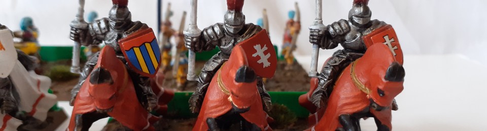 Yes, here we finish a project almost a decade in the making (and wait, have I been doing this blog for a decade… *checks* woah so I have!). Way back in 2015 I posted my first Battle Masters painted minis, a stand of Chaos Warriors. It was pretty basic. I wasn’t a very good painter (am still not going to win any awards but hey, you’ve got to have mediocrity to have excellence) and these are hard minis to paint well. Roll on nearly 10 years and I have finally finished painting the whole Battle Masters box. The last four stands are complete, and the armies are ready for battle! I will be taking photos of the armies laid out Ansell style sometime, but for now here are the final minis…. as I said before, these aren’t very easy minis to paint well. My biggest complaint regards the archers and crossbowmen – that the mold line runs down the middle of their faces, which are already poorly defined. Very hard to do anything there without losing all facial defination. The crossbowmen are sculpted so that where there should be a space between the bow and the body there is plastic, which is hard to paint in a way that hides it. The knights are a lot easier to paint in a way that flatters your painting skills just by adding some design to the barding. I was experimenting with different coloured undercoats on this lot, using paints from the various tiny pots of Airfix style paint. I then layered shades and contrast paints to see what I learned. I didn’t learn much but that’s part of learning! One final comment – I did pick up lots of BM Ogres as per that 2015 post, but never did anything with them! Might be about time to pull my finger out….