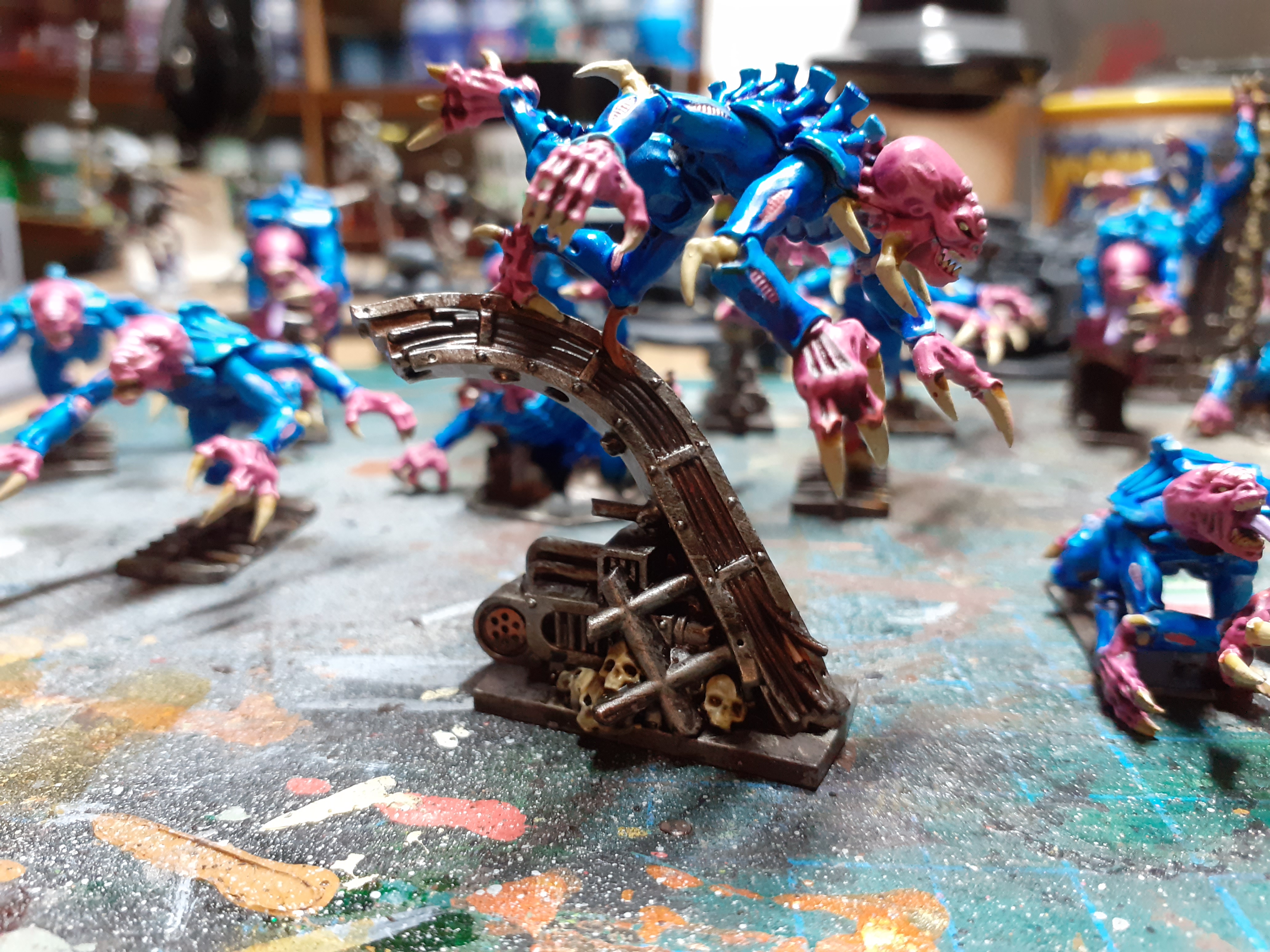It was nearly a decade ago that this project began, with the reissue of Space Hulk in a shiny new box with amazing new Terminators and Genestealers. I picked it up, swooned over it, and started painting. I made a few mistakes with this set. Firstly I painted a single Terminator as a Blood Angel, didn’t think much of my work, and painted the rest as Steel Guard. They look great as Steel Guard, but perhaps they might have been ever better as Blood Angels! Secondly, I was intimidated by the vast mass of claws and teeth and divided the ‘Stealers into two piles to make them more managable. The first were painted more-or-less at the time, the second have languished at the bottom of the leadpile ever since. Well, no more! I’ve been trying to clear my backlog by painting or selling on those things that have been waiting the longest for my attention…