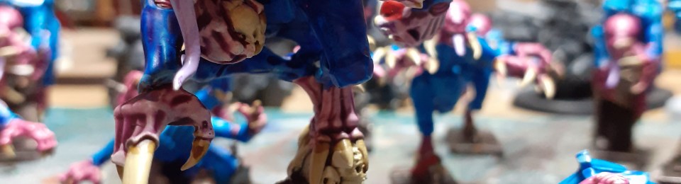 It was nearly a decade ago that this project began, with the reissue of Space Hulk in a shiny new box with amazing new Terminators and Genestealers. I picked it up, swooned over it, and started painting. I made a few mistakes with this set. Firstly I painted a single Terminator as a Blood Angel, didn’t think much of my work, and painted the rest as Steel Guard. They look great as Steel Guard, but perhaps they might have been ever better as Blood Angels! Secondly, I was intimidated by the vast mass of claws and teeth and divided the ‘Stealers into two piles to make them more managable. The first were painted more-or-less at the time, the second have languished at the bottom of the leadpile ever since. Well, no more! I’ve been trying to clear my backlog by painting or selling on those things that have been waiting the longest for my attention…
