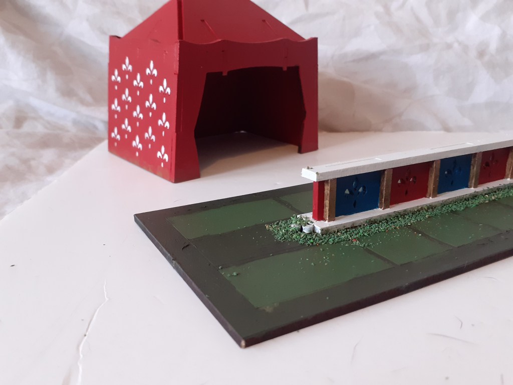 I impulse-backed this game on Ks a while ago because I have a secret collection of halflings. Whats more these halflings number into 3 digits now. And not a single one has been painted or even assembled. How does this happen? What is wrong with me? Anyway, halflings. Half Tilt is a jousting game featuring halflings on goats / pigs / seals etc. I backed it. This is the gameboard. I half-arsed it. One day I will have a giant halfling army and the bakeries of the world will quake!