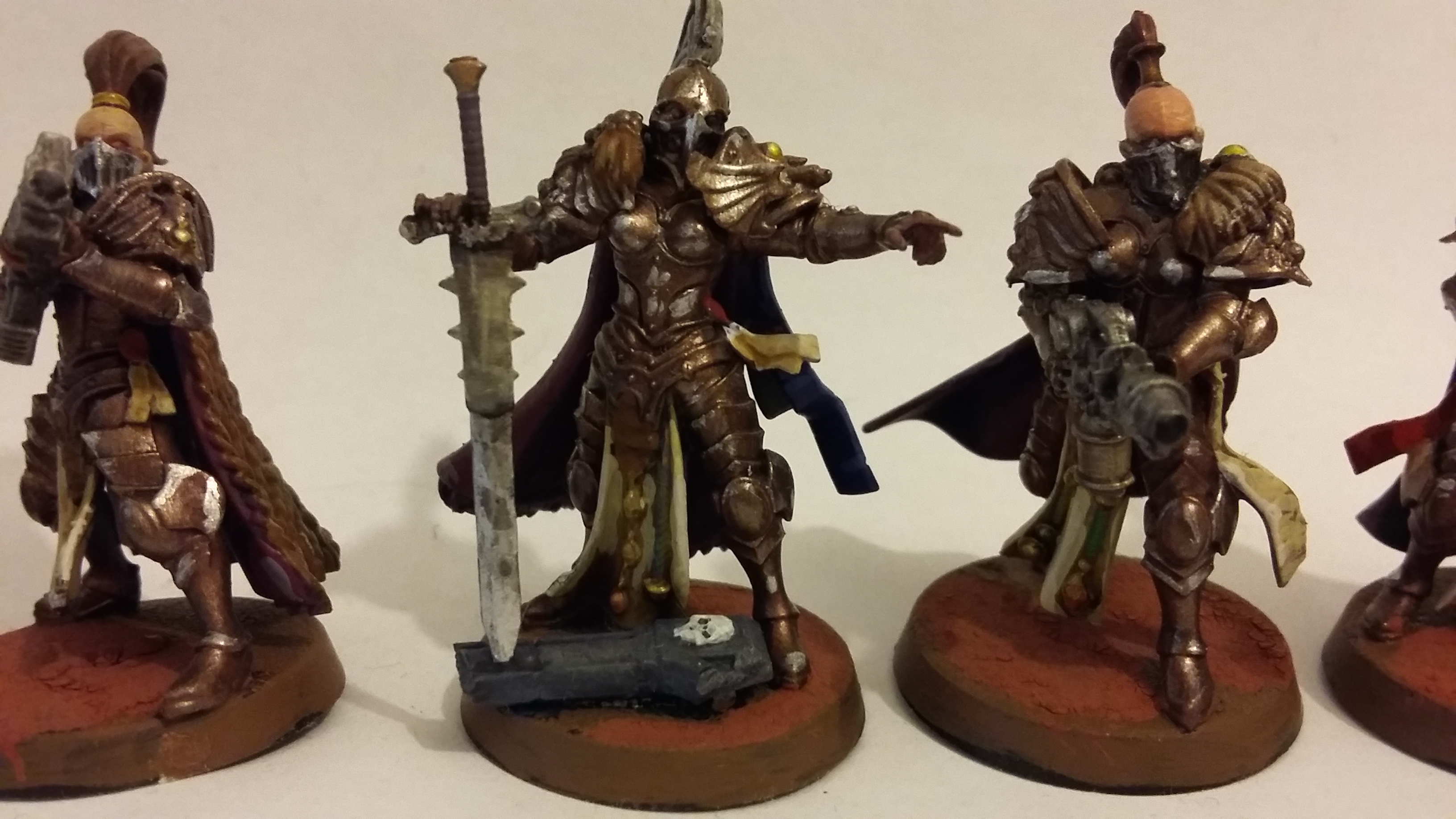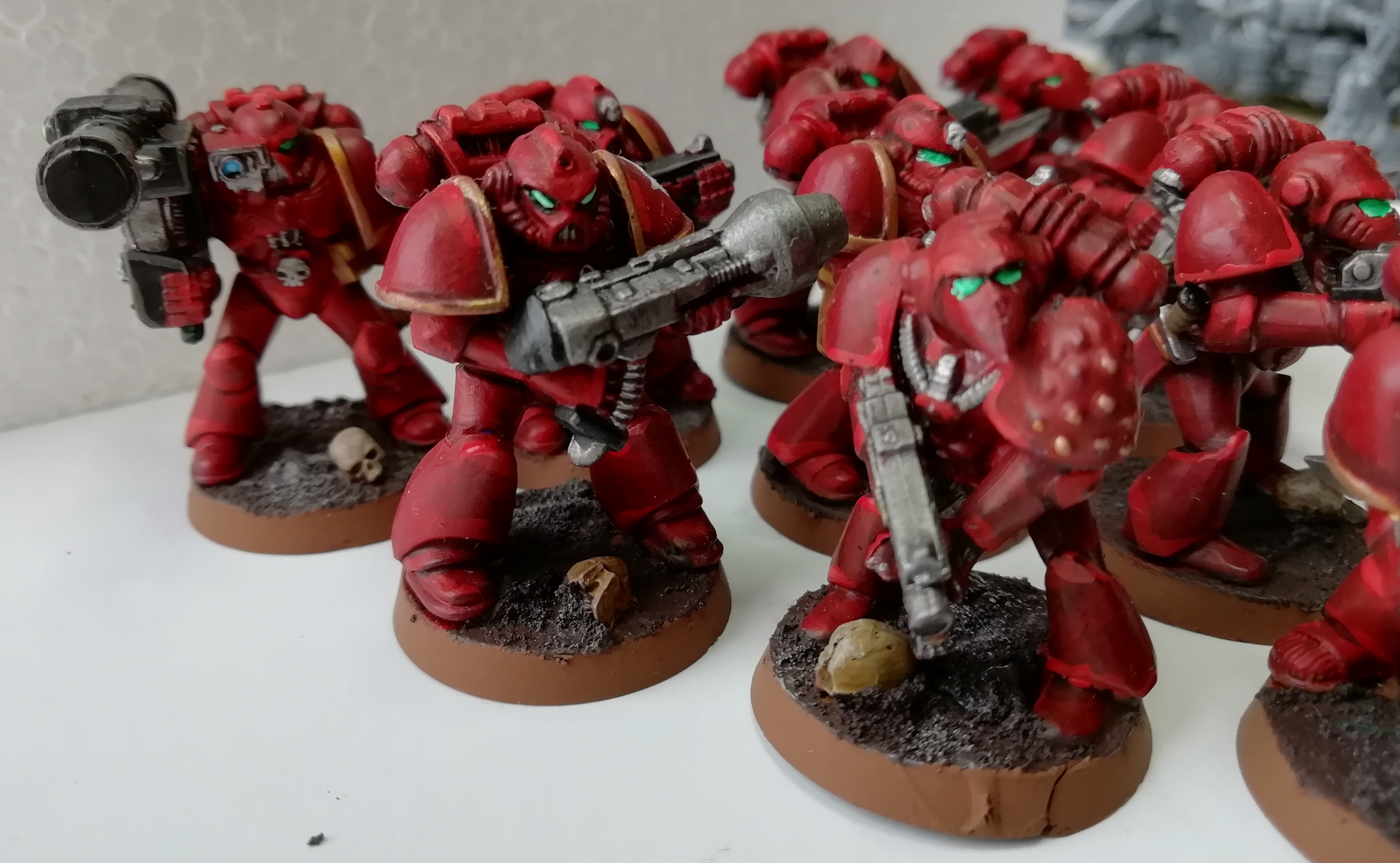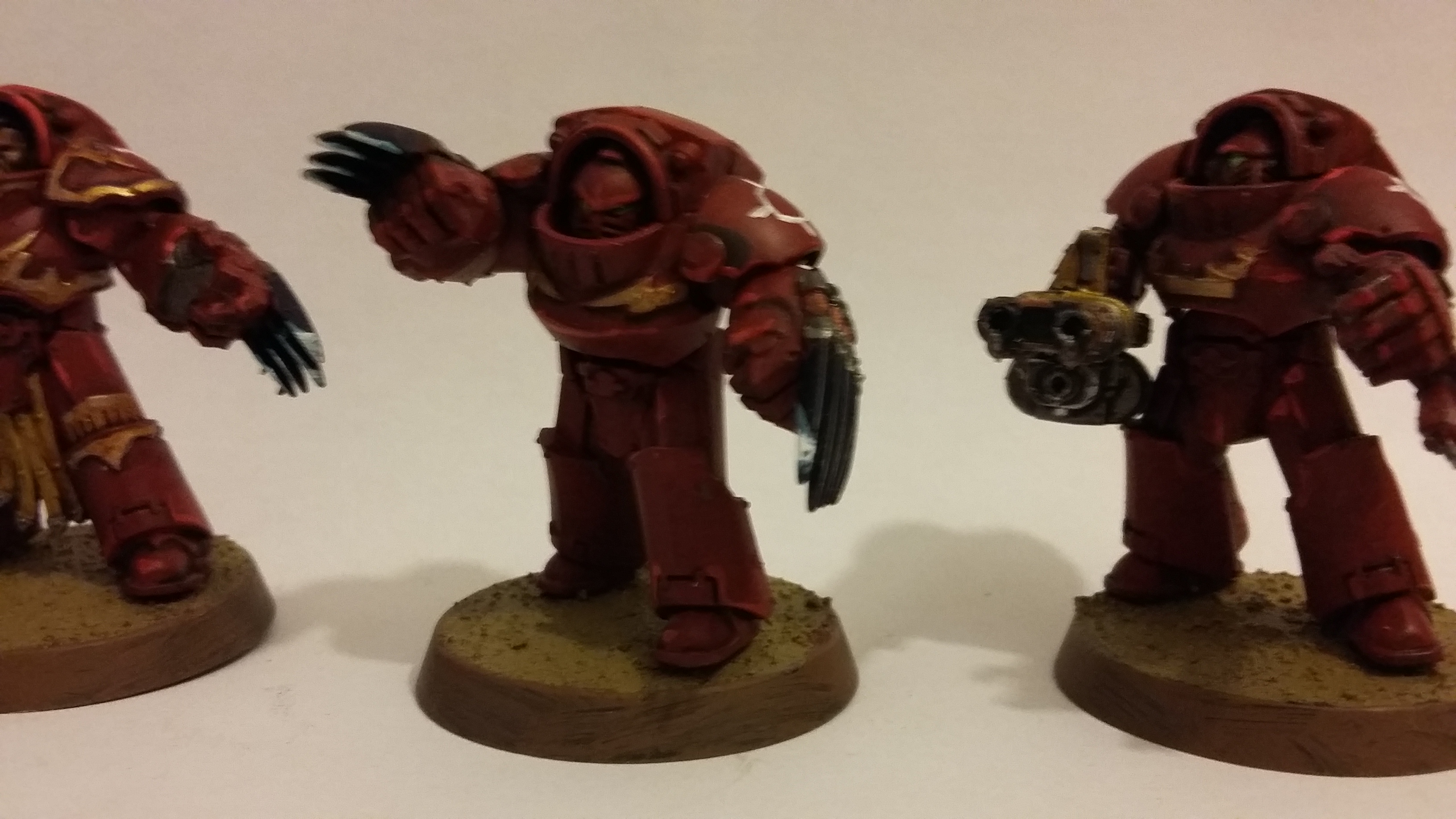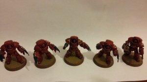 I was sorting out my painting miniatures recently, following our house move. Clearing out the old and tidying up the new, that sort of thing. I was putting all the minis from the various games, assessing what i had completed and what I hadn’t so that if a visitor expressed a desire to play e.g. Burning of Prospero, I knew whether the minis were painted or not and if so, where they were. It turns out that, either by forgotten design or a common-or-garden brain fart, I had painted all the Iron Armour marines as Space Wolves. That wasn’t so bright, I needed a squad of Thousand Sons or the game would be wrong! I lacked a spare squard of Iron Armour or similar 30K miniatures and didn’t want to buy a set as I have more marines knocking around than I will ever get round to painting (and I sold off a big box recently too!). Instead I fished out some ‘old’ marines, making a squad of marines from the Imperial Space Marines, Space Crusade, and 2nd Edition box set (with a Tactical Space Marine as a sergeant). I gave them a random set of weapons to imply that this is a rag-tag collection fighting a guerrila war in the ashes of their home using whatever weapons they can find. Painted them as quickly and as roughly as I could (maybe contrast paints will make this sort of thing even easier). Nice work. Now does anyone want a game of Burning of Prospero?