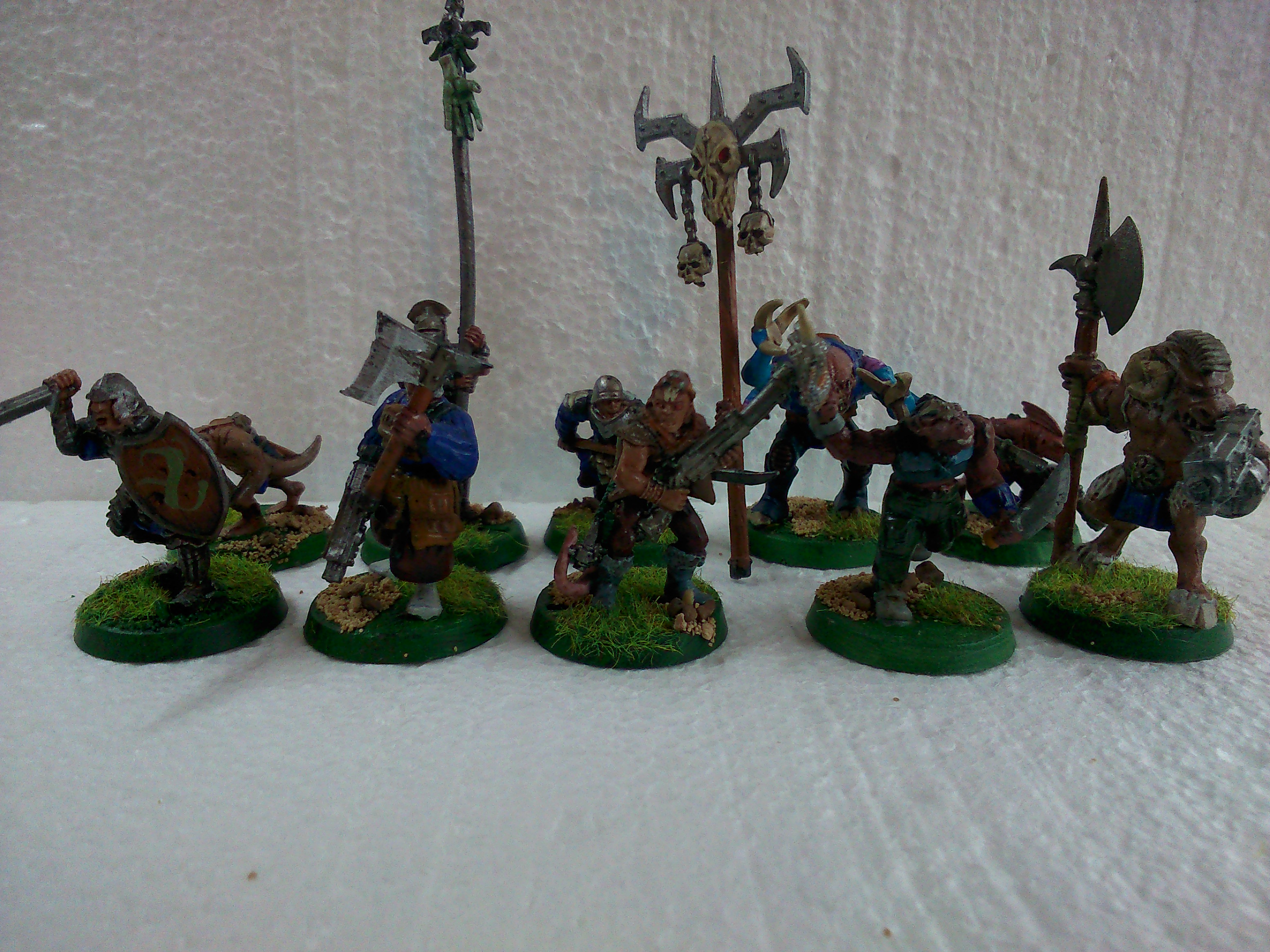 Front Row: LOTR Orc – Empire soldier (converted) – Necromunda Ratskin – Skaven / Imperial Guard converstion – WHFB Beastman