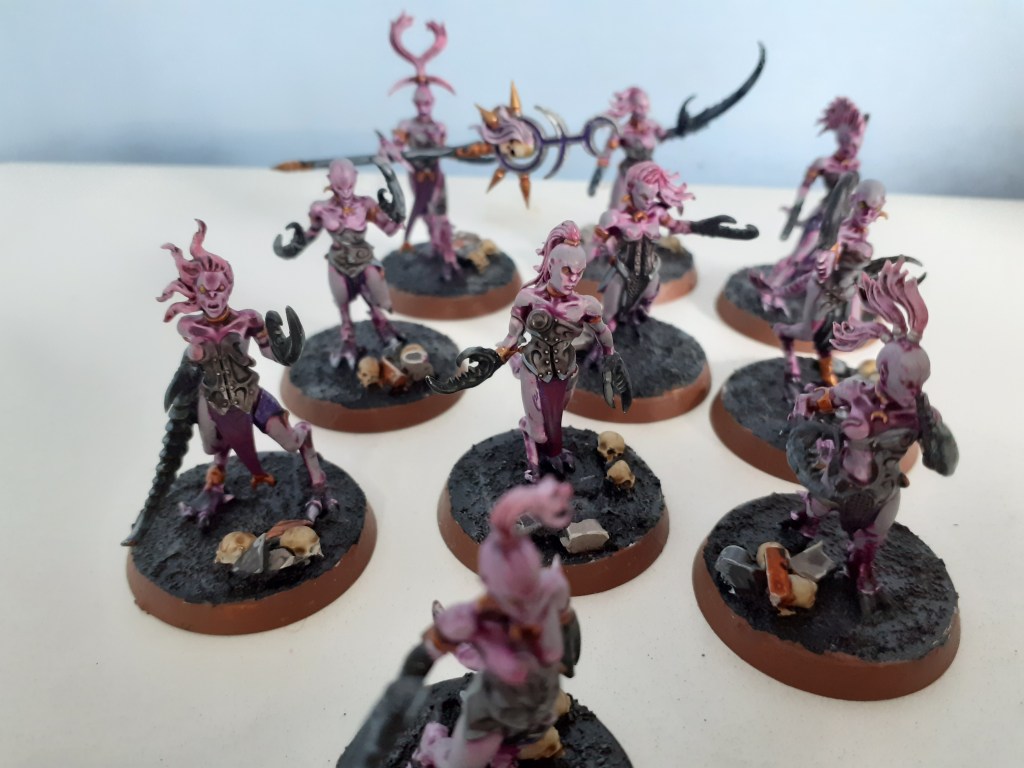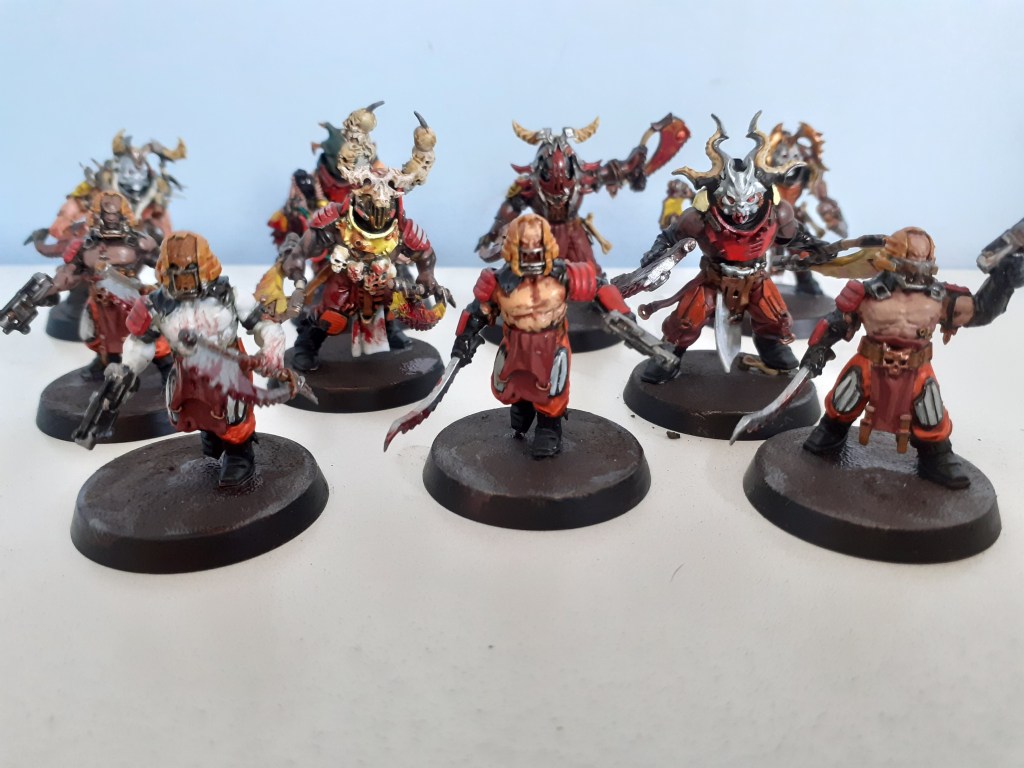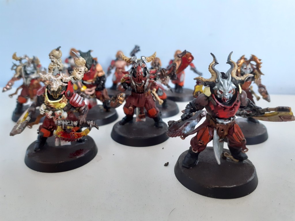 A digression into newhammer, I painted these guys because I like the miniatures so much. Full of detail and bursting with ideas. I like the idea that this is how some people slip into chaos worship, without even realising that they’re doing it.