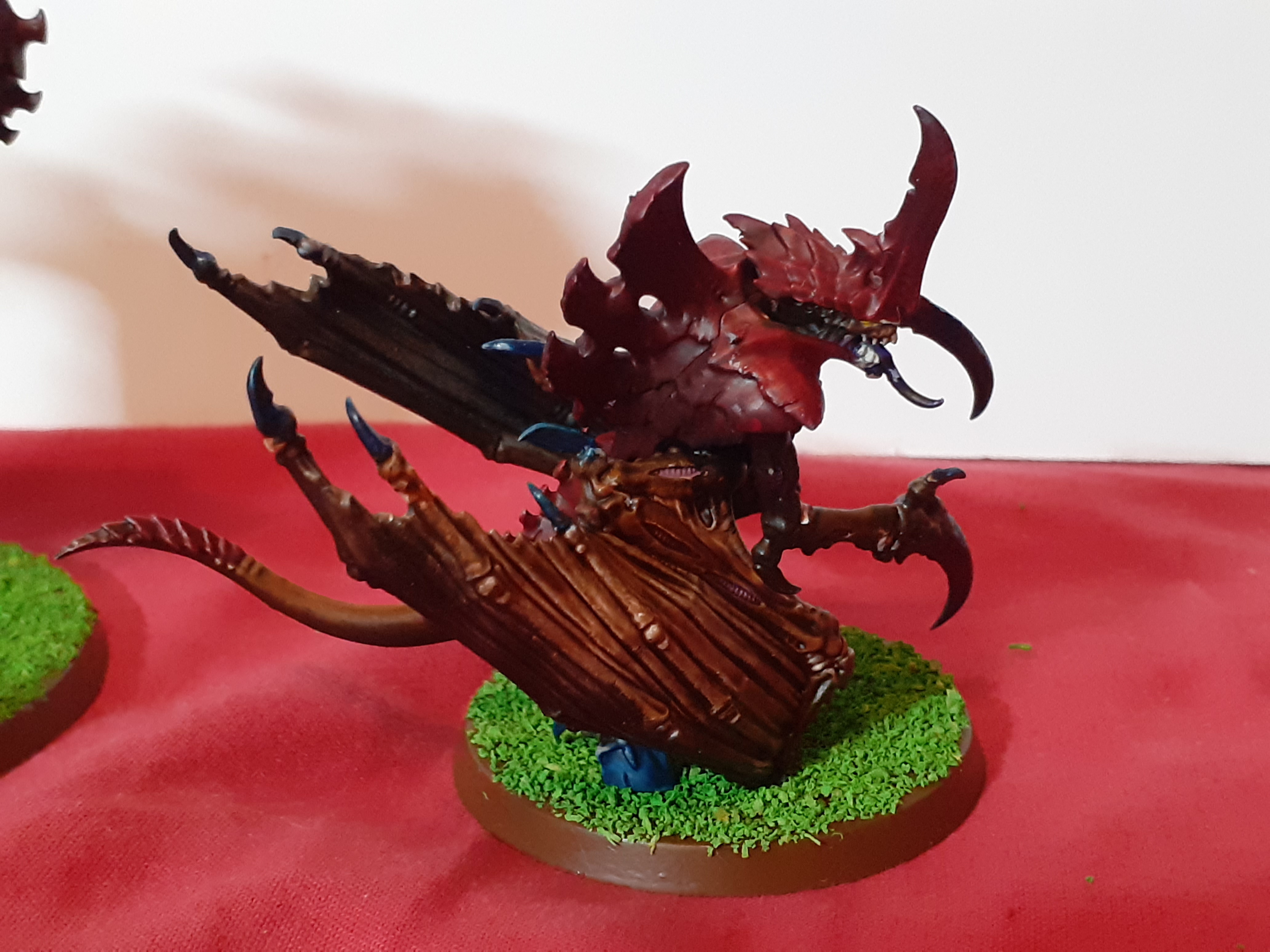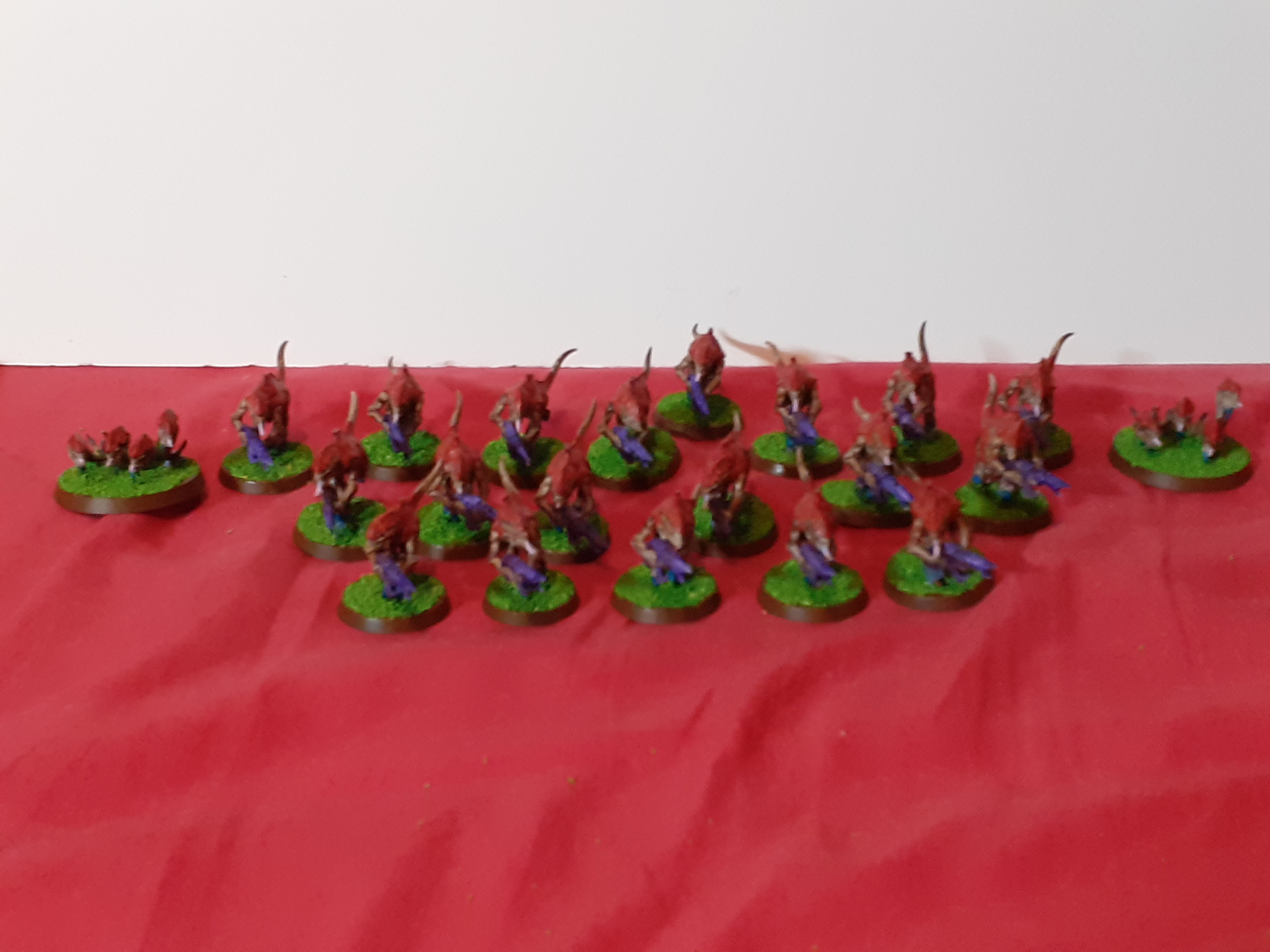 Up next is a conversion that I’m pretty pleased with. It’s a chaos giant that has taken a form surprisingly unseen in the Warhammer Worlds since the very first days… an ettin! Chuckles here was bought originally as an unfinished conversion very cheap on ebay, which rolled around my To Paint pile for a while, fell apart, became part of my bits box, and finally, years later, re-emerged in a whole new form. Originally the heads were rubbish as they didn’t have a neck at all. Remodelling the neck so that one of them had a long stretchy neck and the other had no neck created a greater sense of movement and difference. He was missing a foot so I found something weird and fleshy, and have tried to give the impression of amorphousness – this guy is in the process of changing. A tail was essential, because chaos. Finally I rebuilt the arms, using some spares from the Cygor kit. He seems like he’s moving fast and pulling up stones as he comes. I tried to paint his skin tones as close to my own as I could! I wanted to give him a farmers’ tan, but couldnt work out how to do it. His face is scarred, as is his unmutated foot – it seemed obvious that his foot would attract a lot of sword hits. Places where the previous conversion left encrustations of green stuff I have tried to turn into scar tissue. He’s been hit with a flame weapon at some point. I am very pleased with how this turned out. I hope you like it!