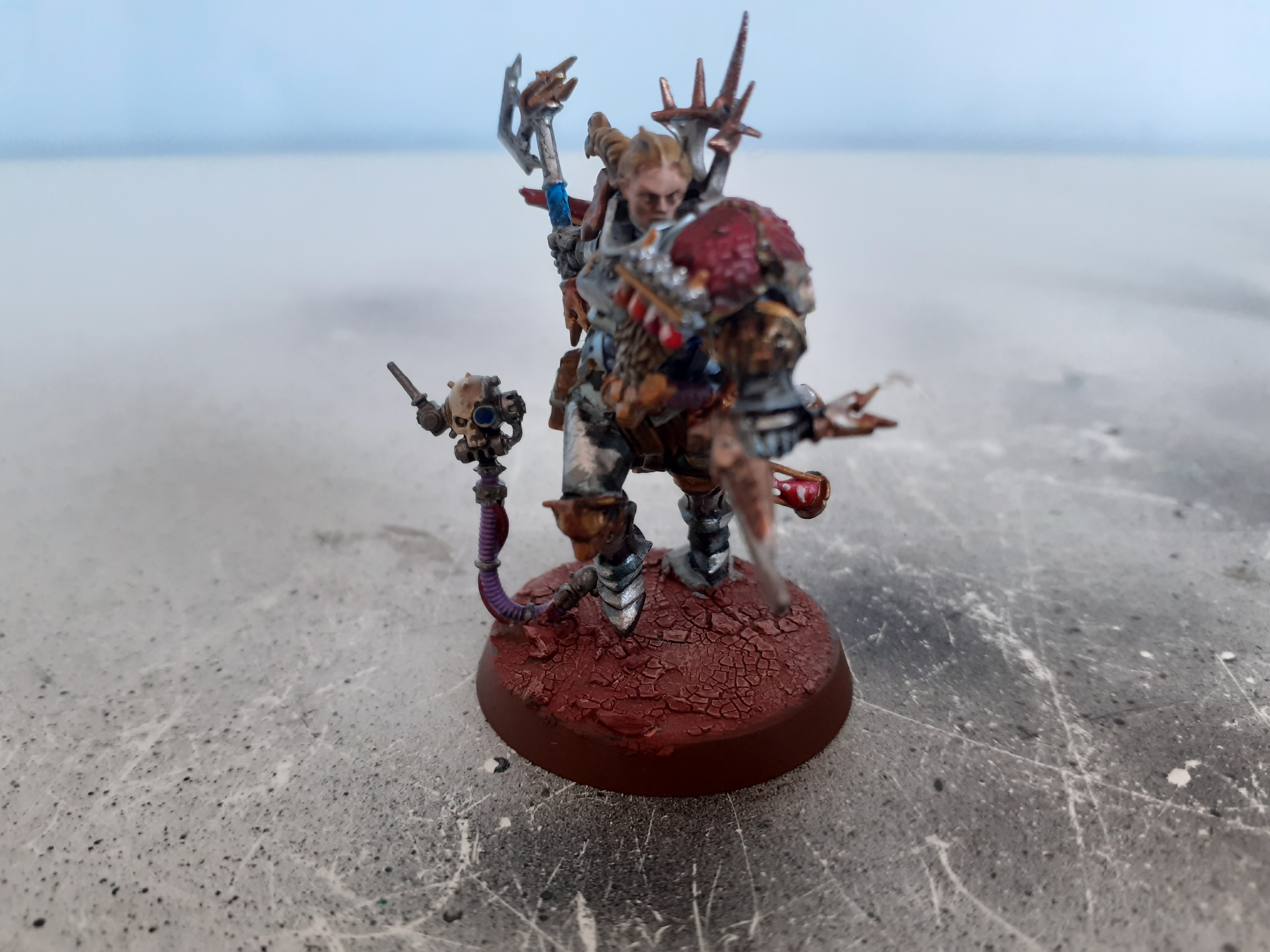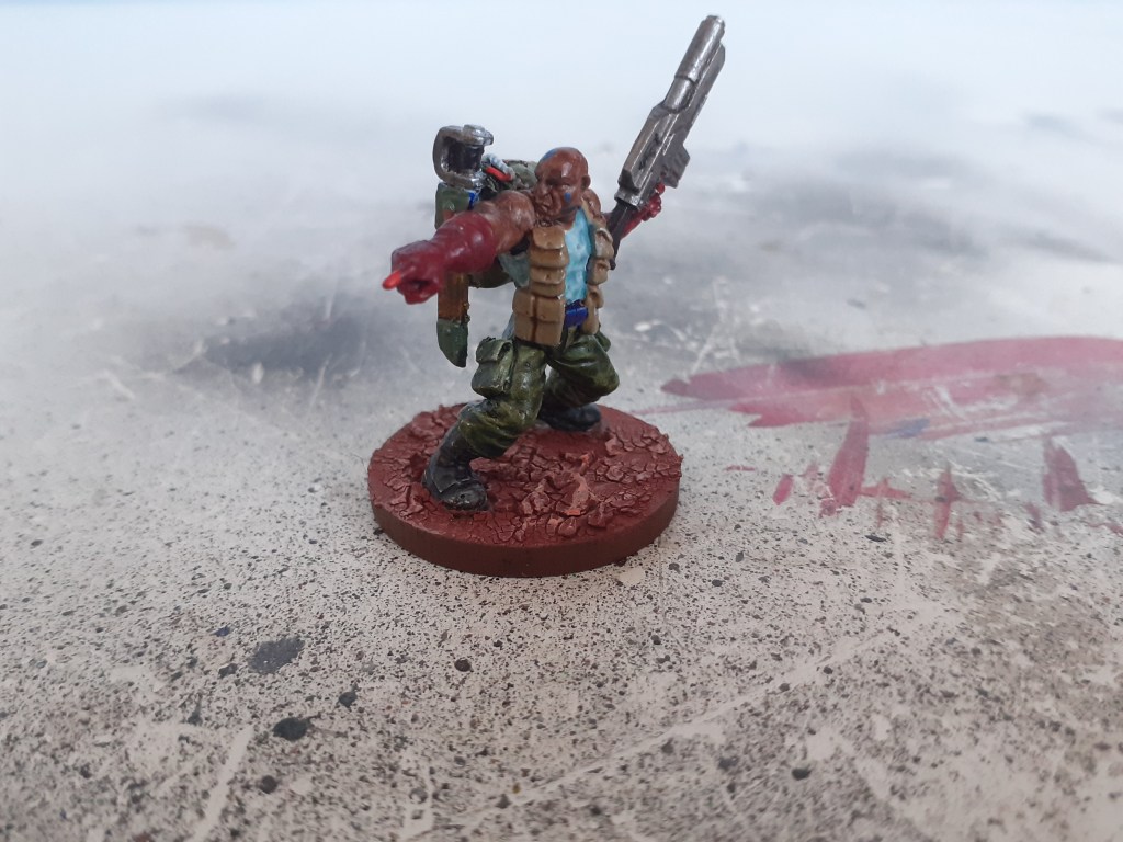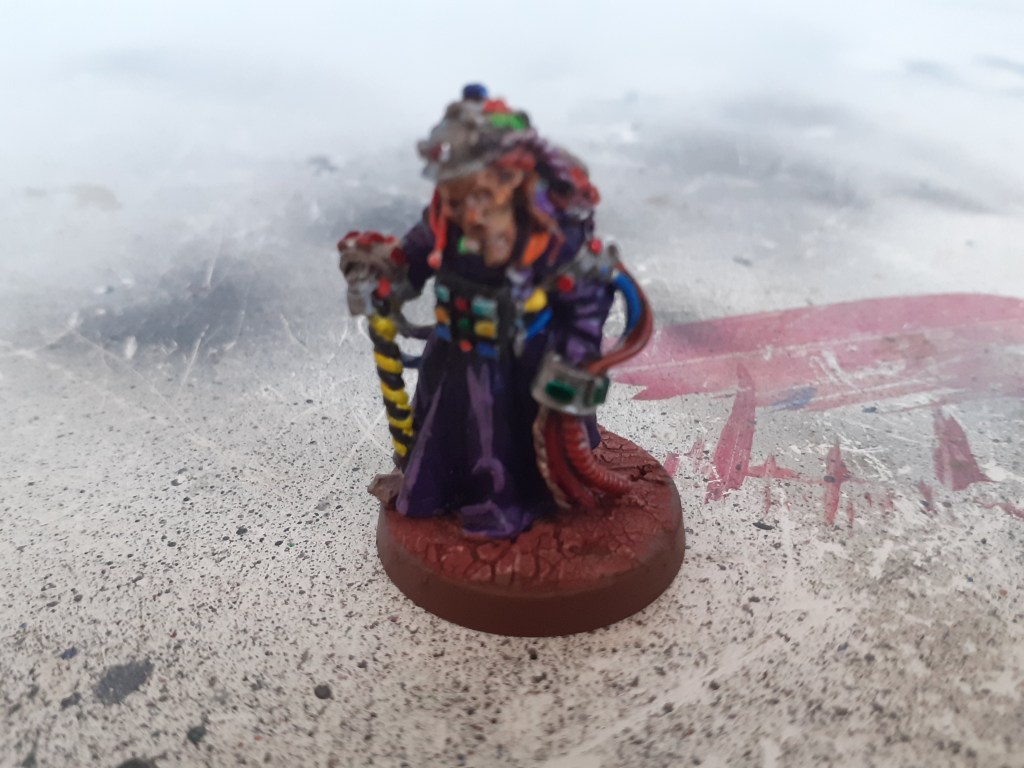 The Inquisitor was really an excuse to paint a mini I liked. This is Athera, The Blade Of The Matriarch, who is an Escher Gang character from Necromunda. A little digression about Necromunda. Necromunda is where so much of the cool shit is happening right now. Almost every mini released for Necromunda adds new colour and character to 40k. It’s all full of amazing levels of characterisation and drama – GW have taken the opportunity to zoom in on a single planet out of a million (or more) and fill it full of grotesqueries, monsters, and humans trying to survive in a psychotic fascist death machine. I could buy everything because its all amazing! And I don’t even have the boxed game! For no good reason. One day…